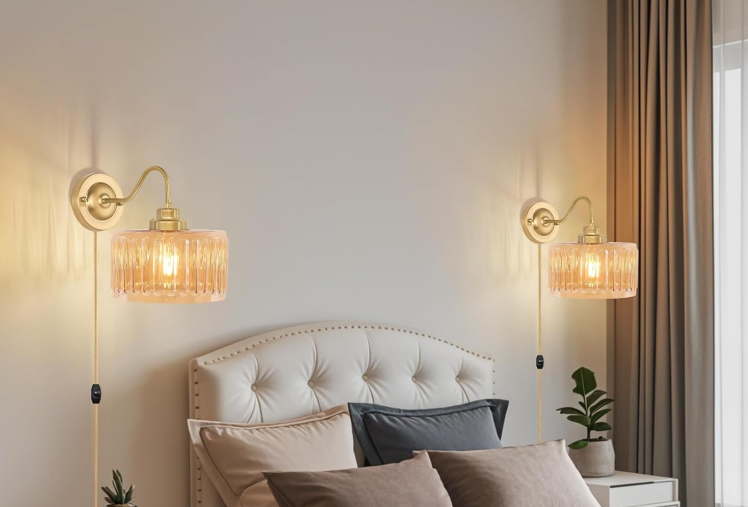 Vintage Plug in Wall Sconces,Dimmable Wall Sconces of Two,Wall Lamps with Plug in Cord & Flower Glass Lampshade