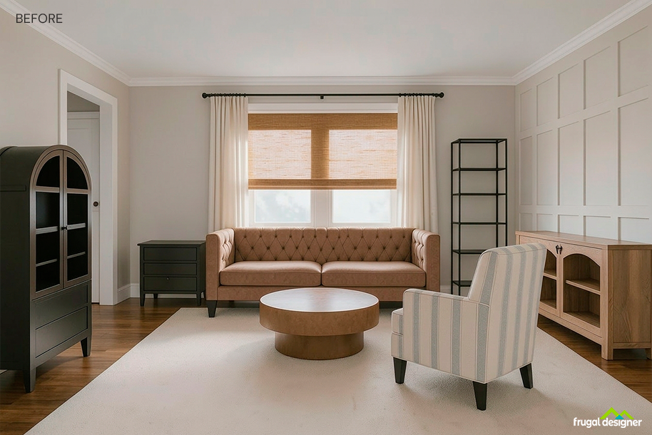 We brought in an area rug that picks up tones from the wall color and furniture, and spreads them across the floor. That’s what helps carry the color through the room instead of it staying in just one spot.
